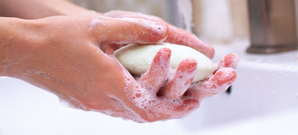 Sabun adalah elemen penting dalam proses ini karena dapat melarutkan kotoran dan kuman yang menempel di kulit. Gosok sabun hingga berbusa merata.
